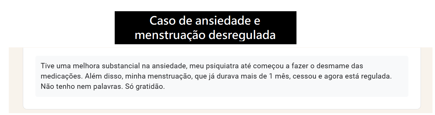 Hoje vivo uma vida completamente livre dàqueles sintomas e com o propósito de ajudar pessoas que estão na mesma busca, desejando profundamente se libertar da tristeza, do desamparo, da sensação de que não há solução para o seu problema e da desorganização que doenças como essas trazem pra vida das pessoas.